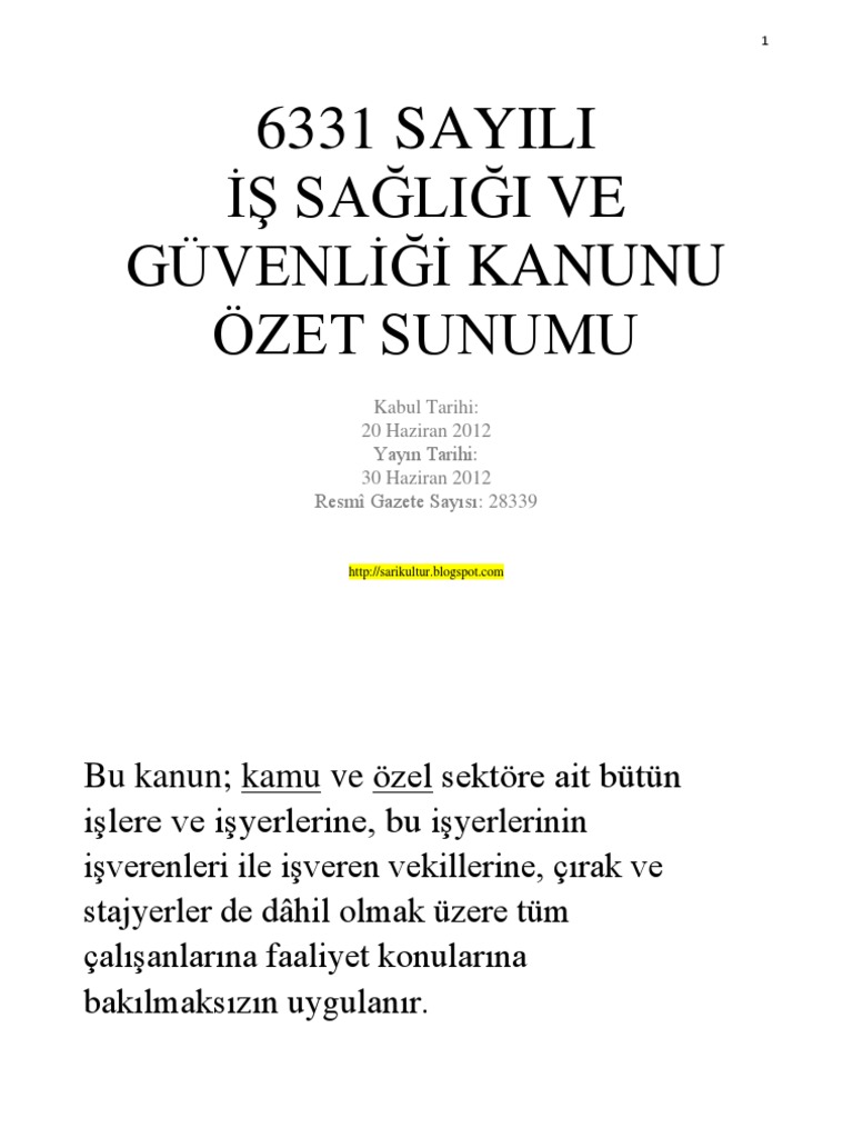 6331 Sayili Is Sagligi Ve Guvenligi Kanunu Pdf Free Download