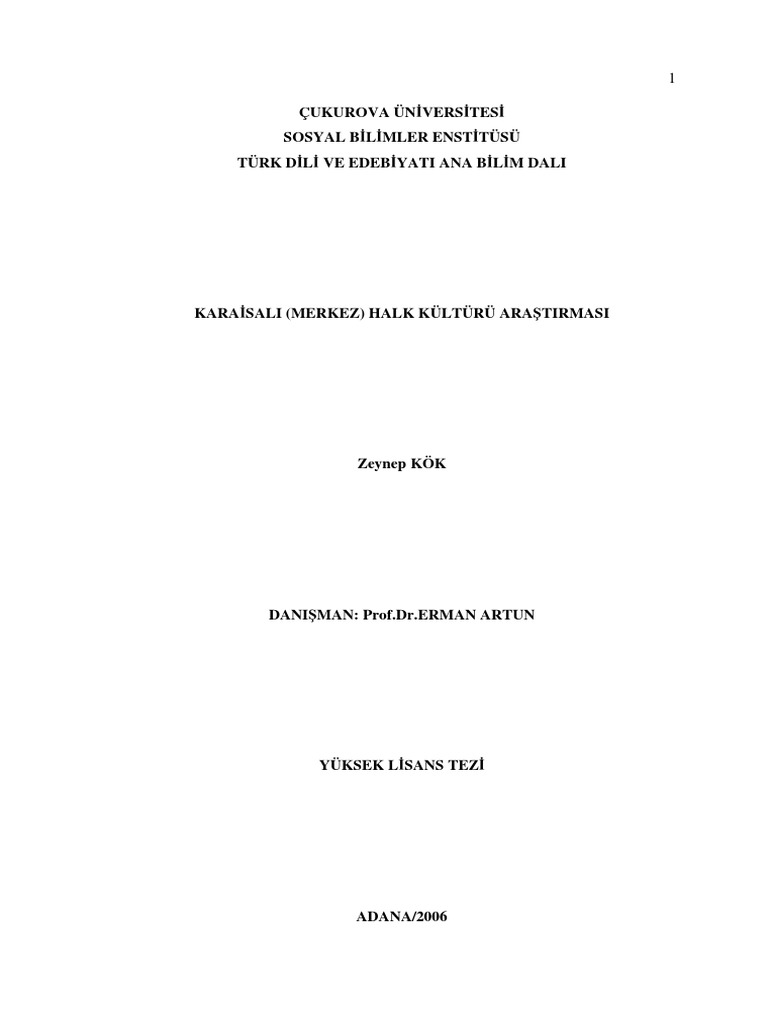 Zeynep Kok Karaisali Adana Halk Kulturu Arastirmasi