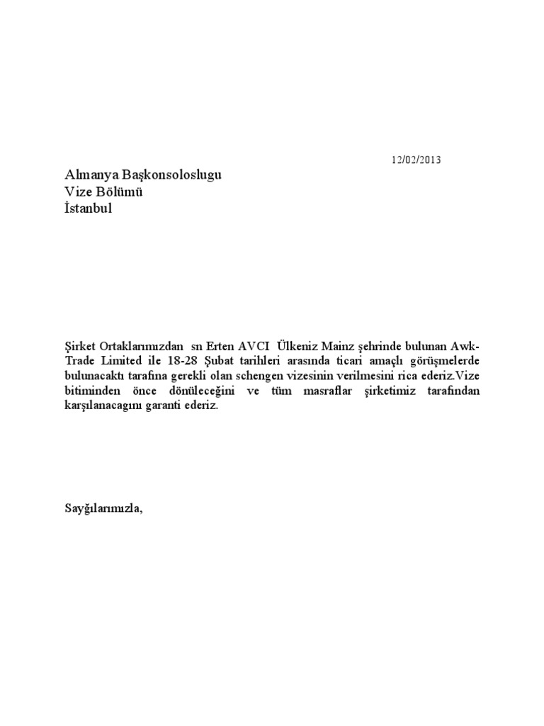 Almanya Ticari Vize Dilekce Ornegi Rusya Vizesi Mikro Vize