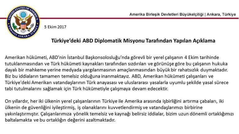 Abd Buyukelciligi Nden Konsolosluk Calisaninin Tutuklanmasina Tepki Son Dakika Haber