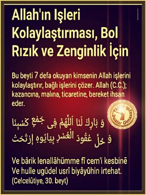Sifa Ayetleri Ve Dualari Bagli Islerin Cozulmesi Rizik Bollugu Ve Zenginlik Icin Okunacak Dua