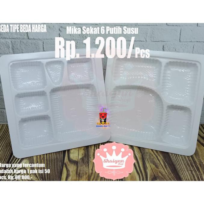 Isi 50 Pcs Perpak Mika Sekat 6 Dalaman Box Catering Mika Putih Susu Shopee Indonesia