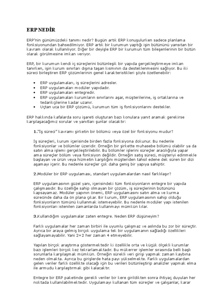 Erp Nedir Ve Erp Nin Onemi