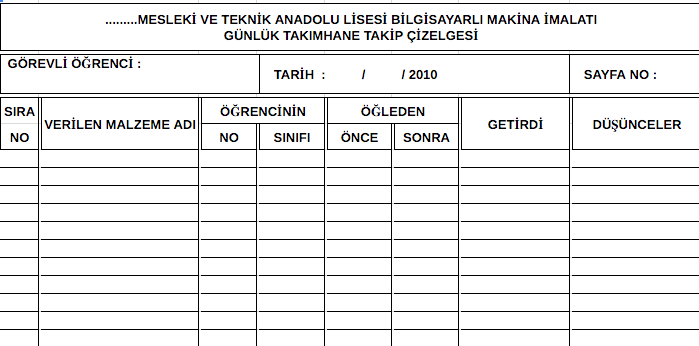 Takimhane Gunluk Malzeme Takip Cizelgesi Makine Egitimi
