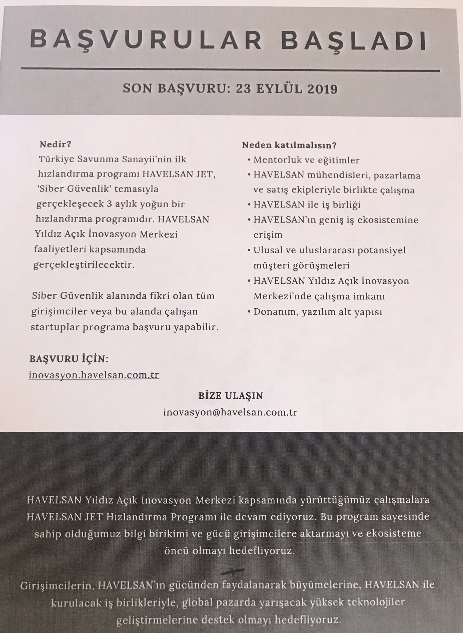 Havelsan On Twitter Is Birligi Yapacagimiz Girisimcileri Ariyoruz Siber Guvenlik Alaninda Proje Gelistiren Veya Fikir Sahibi Olan Herkesi Havelsanjet Siber Guvenlik Hizlandirma Programina Bekliyoruz Basvuru Icin Son Hafta Acele Edin 22 Kasim