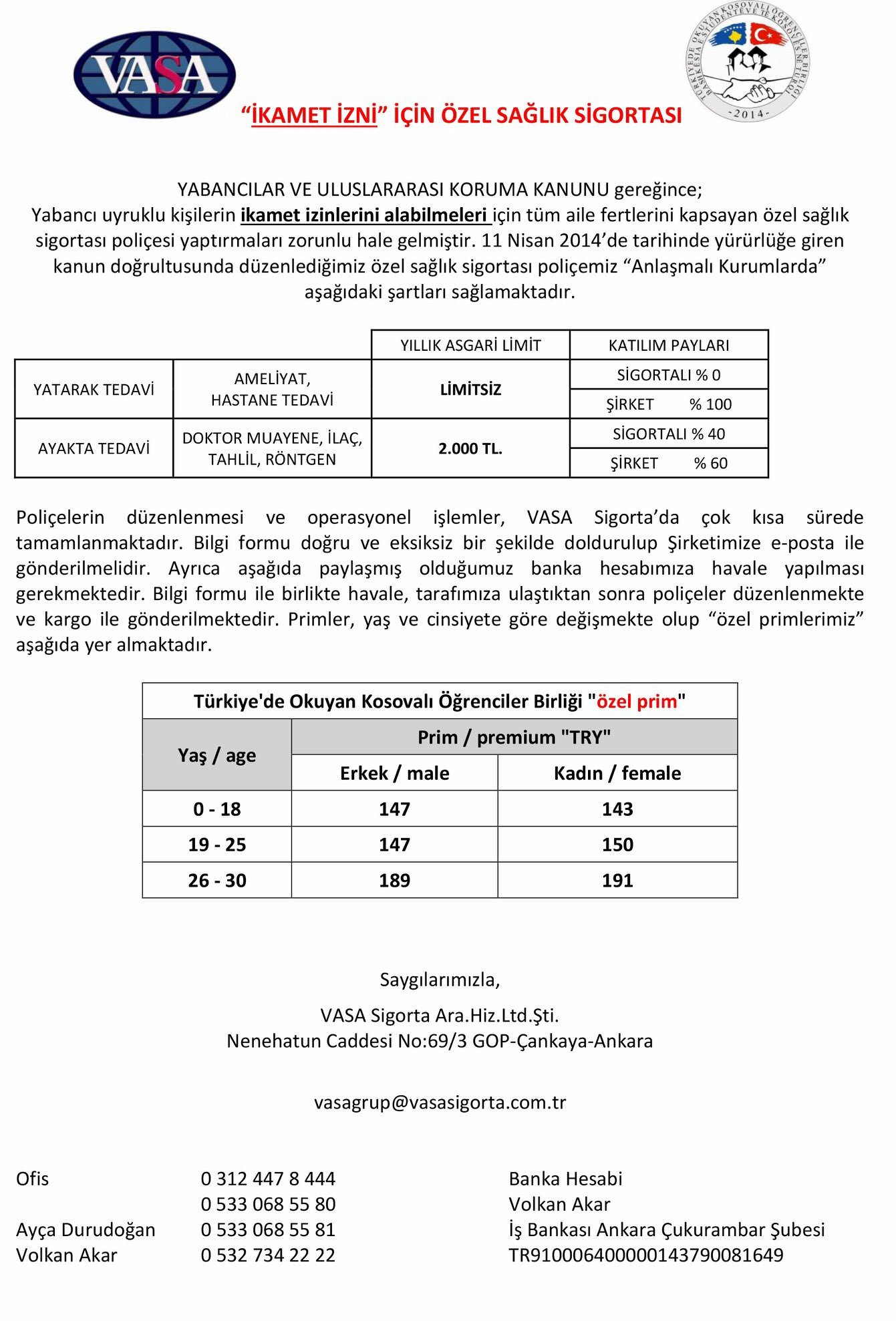 Tokob On Twitter Ikamet Izni Icin Gerekli Olan Saglik Sigortasi Ile Ilgili Duyuru Turkiye De Okuyan Kosovali Ogrenciler Birligi Ve Vasa Sigorta Sirketi Arasinda Varilan Anlasmaya Gore Ogrencilerimize Uygulanacak Sigorta Ucretleri Gorselde Yer