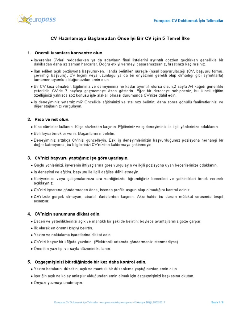 Cv Hazirlamaya Baslamadan Once Iyi Bir Cv Icin 5 Temel Ilke Pdf Free Download