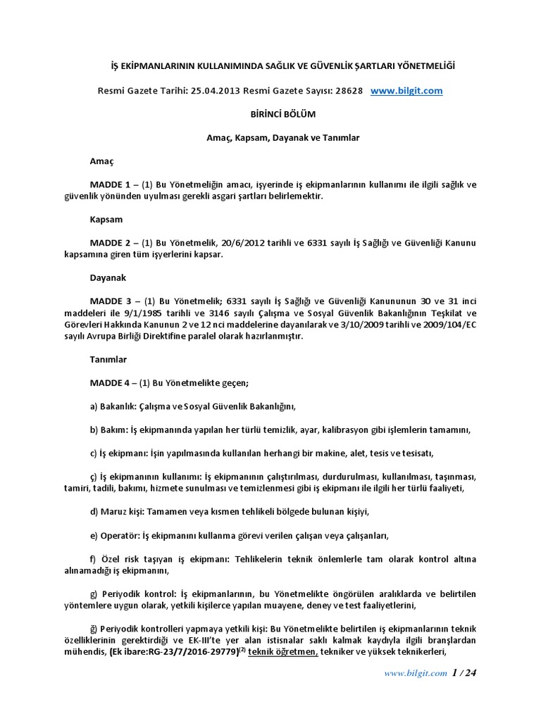 Is Ekipmanlarinin Kullaniminda Saglik Ve Guvenlik Sartlari Yonetmeligi Pdf Ucretsiz Indirin
