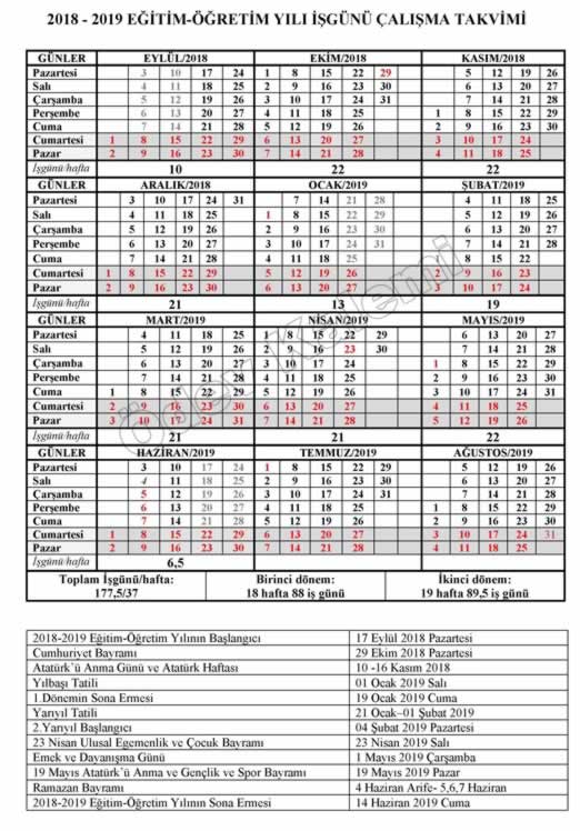 Odev Kalemi Meb 2018 2019 Is Gunu Takvimi Calisma Takvimi