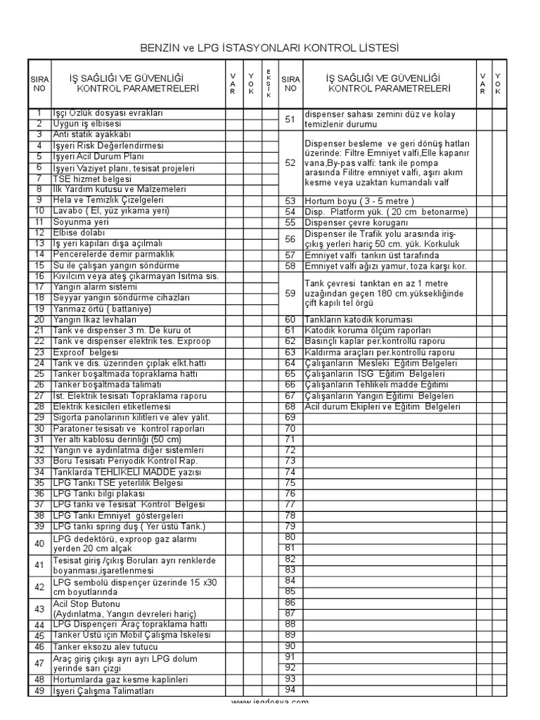 Is Sagligi Ve Guvenligi Dokuman Kontrol Listesi Checklist