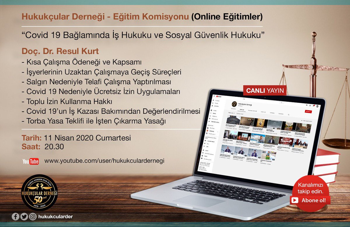 Hukukcular Dernegi On Twitter Egitim Komisyonumuz Tarafindan Organize Edilen Covid 19 Baglaminda Is Hukuku Ve Sosyal Guvenlik Hukuku Programi Doc Dr Resul Kurt Un Sunumuyla 11 Nisan Cumartesi 20 30 Da Youtube Kanalimizda Canli Yayininda