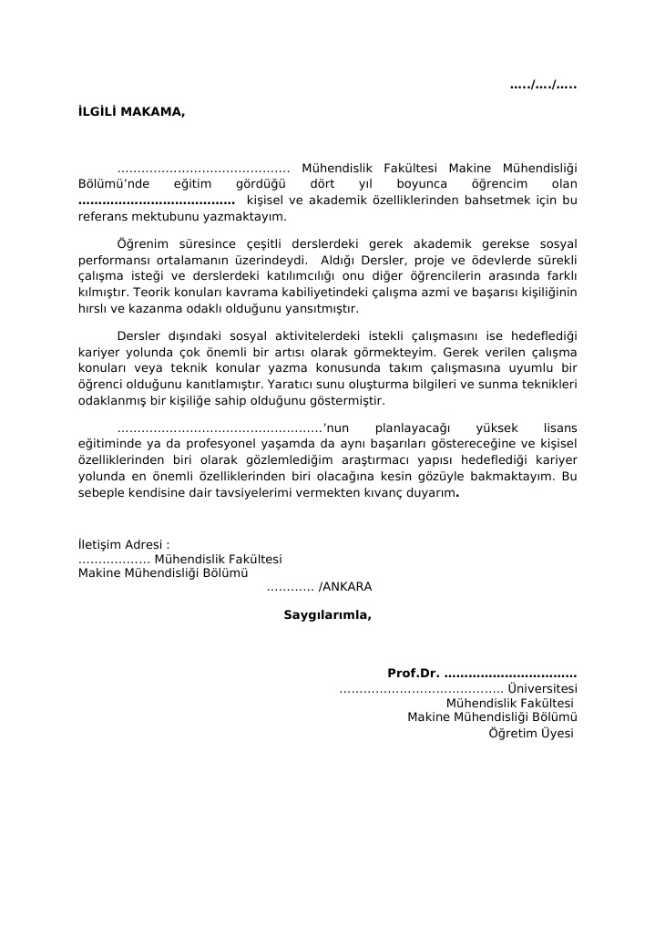 Turkce Referans Mektubu Ornegi Ii
