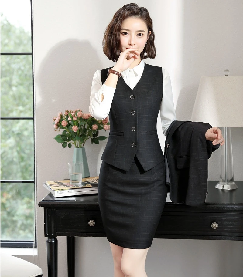 Resmi Kadin Is Elbisesi Etek Ve Ust Setleri Is Kiyafetleri Bayan Yelek Ve Yelekler Siyah Ofis Uniforma Tarzi Etek Takim Elbiseler Aliexpress