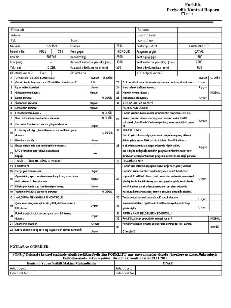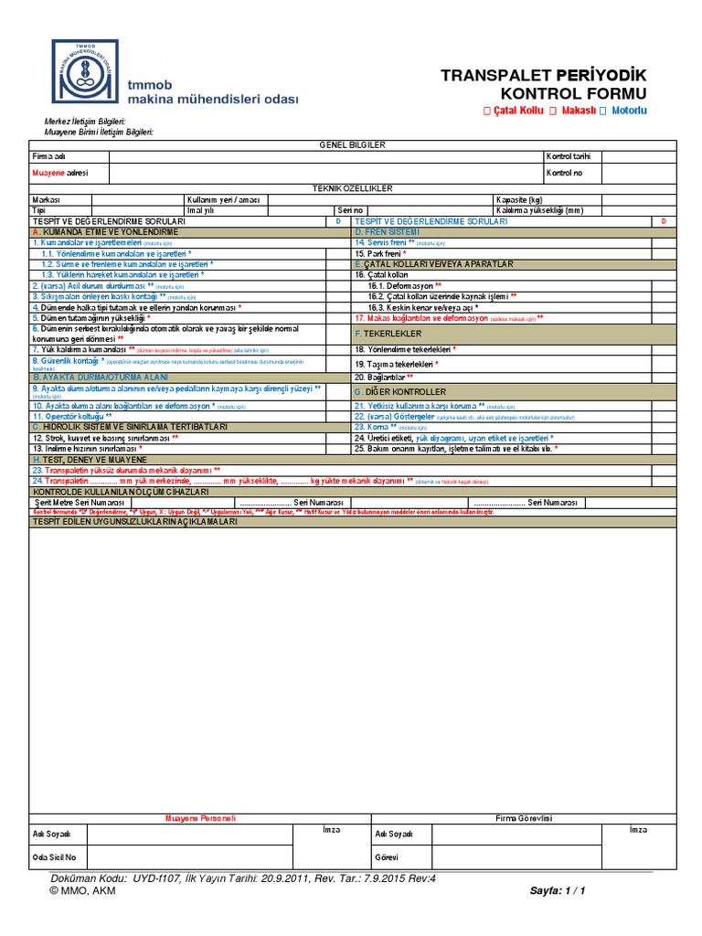 Is Makinalari Periyodik Kontrol Formu Yonetmeligi Femko