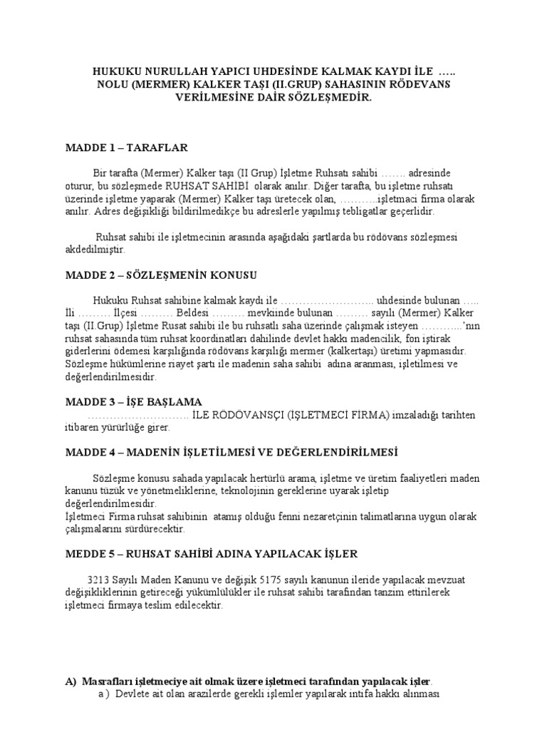 Rodevans Sozlesme Ornegi