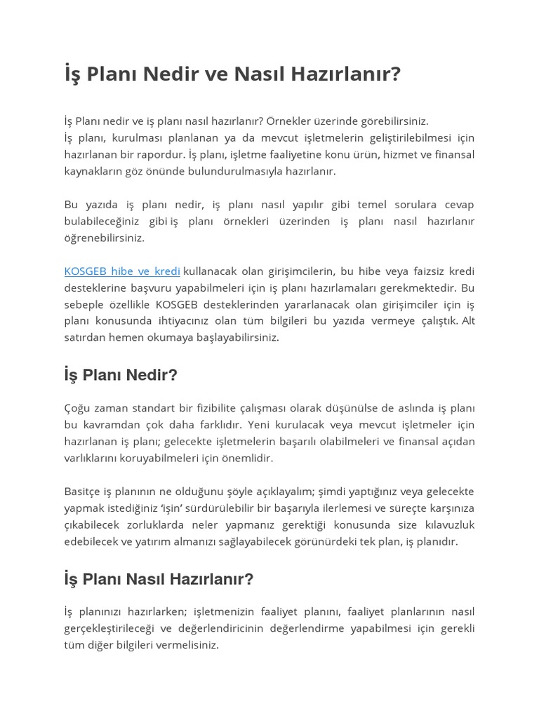 Kosgeb Is Plani Nasil Hazirlanir Is Plani Ornekleri Hibeci Com