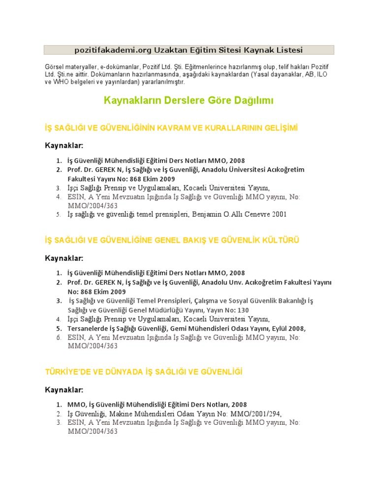 Is Sagligi Ve Guvenligi Ders Notlari Pdf Ucretsiz Indirin