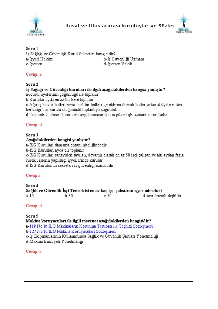 Isg Is Guvenligi Uzmanligi Sinav Sorulari Ve Cevaplari 5 Aralik 2015
