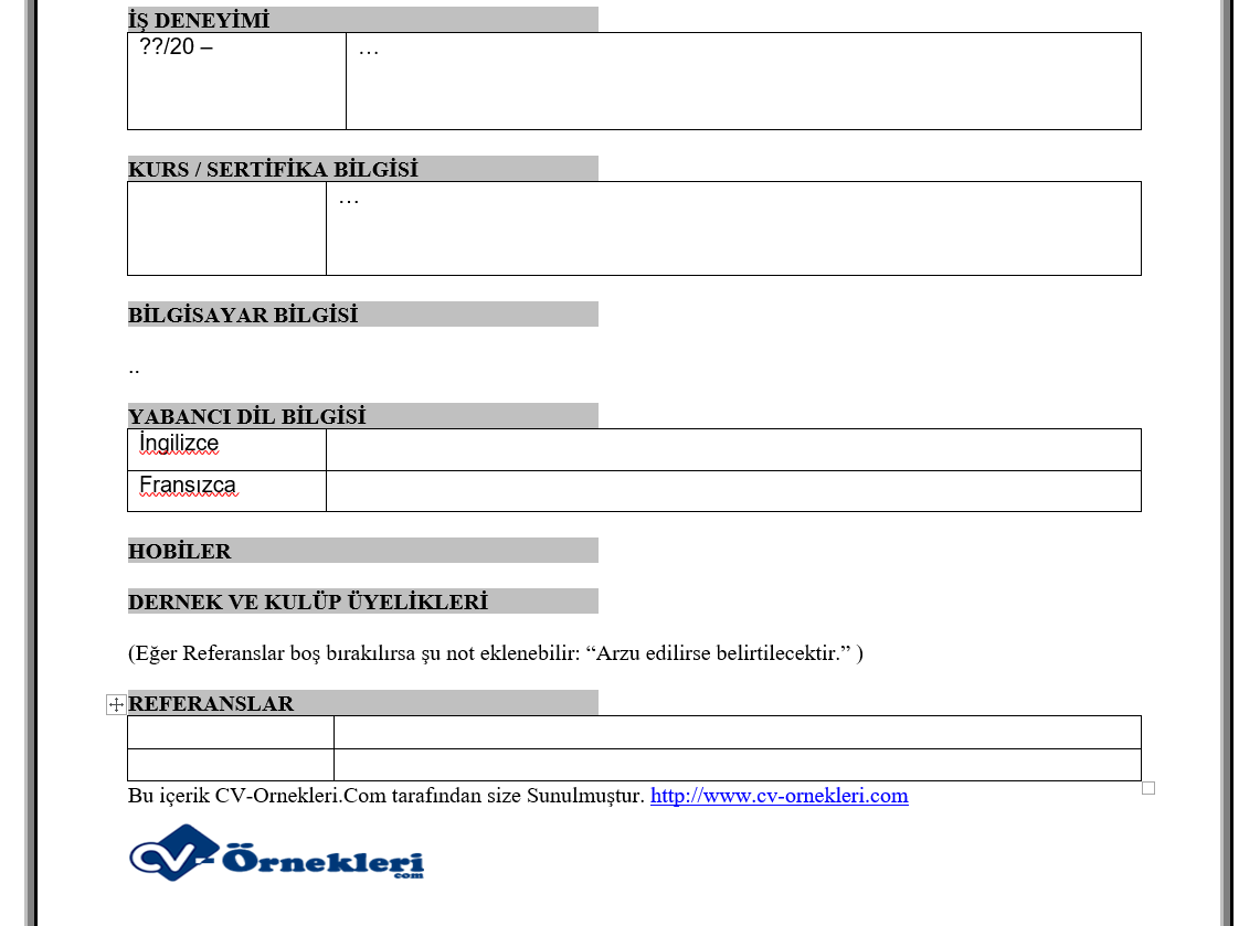 Bos Cv Ornekleri Bos Cv Doldurmak Istiyorum Cv Ornekleri Hazircvornekleri Net
