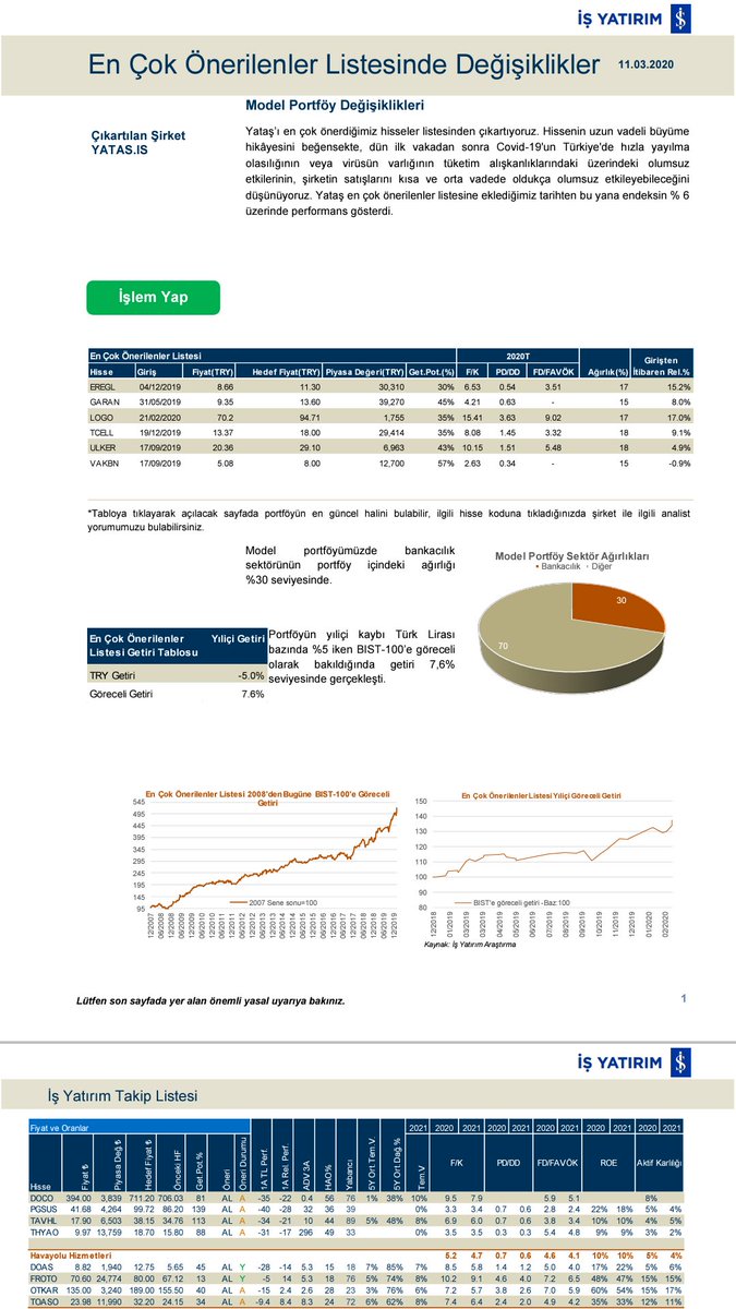 Is Yatirim Model Portfoy Degisiklikleri Paraanaliz