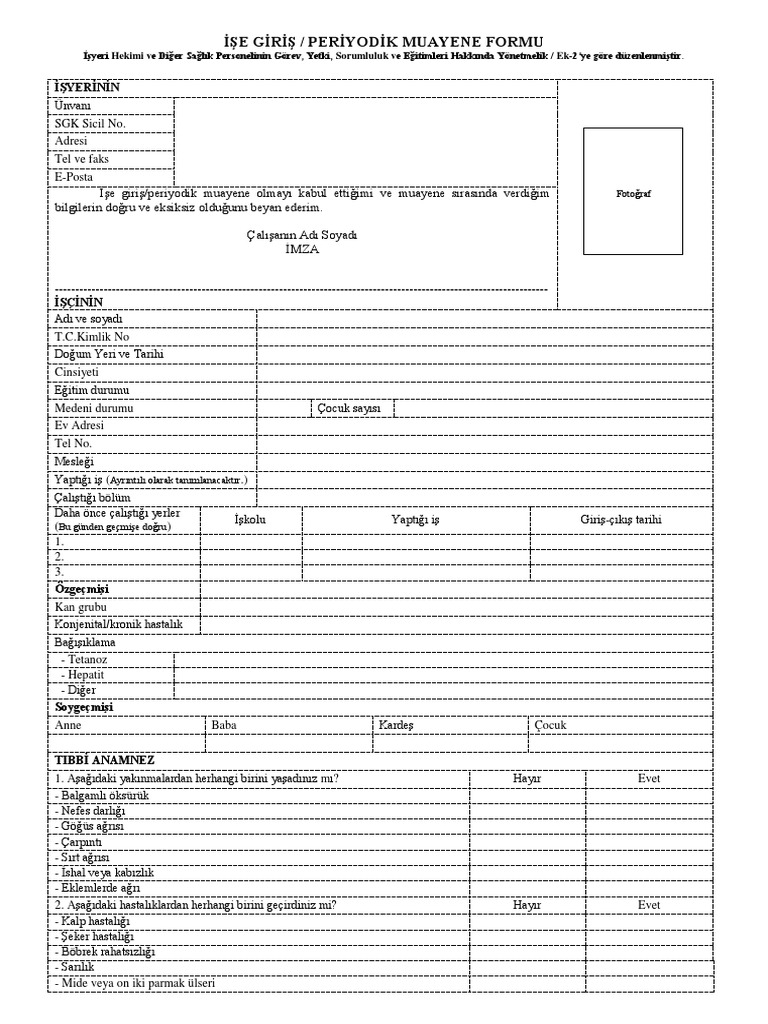 Ise Giris Periyodik Muayene Formu Ek 2 Aile Hekimi Formlari