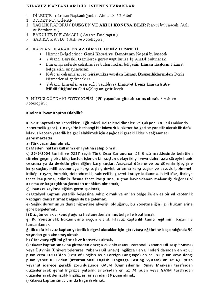 Kilavuz Kaptanlar Icin Gerekli Belgeler