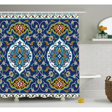 Orange Venue Lacivert Altin Desenli Dus Perdesi Kalem Isi Fiyati