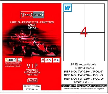 Tanex Tw 2204 Lazer Postalama Davetiye Kargo Isleri Icin Her Pakette 100 Sayfa Etiket Seffaf Amazon Com Tr