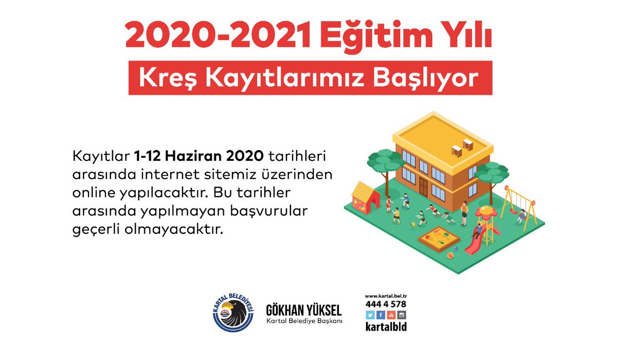 Kartal Belediyesi On Twitter 2020 2021 Egitim Yili Kres Kayitlarimiz Basliyor Kayitlar 1 12 Haziran 2020 Tarihleri Arasinda Internet Sitemiz Uzerinden Online Yapilacaktir Bu Tarihler Arasinda Yapilmayan Basvurular Gecerli Olmayacaktir Https