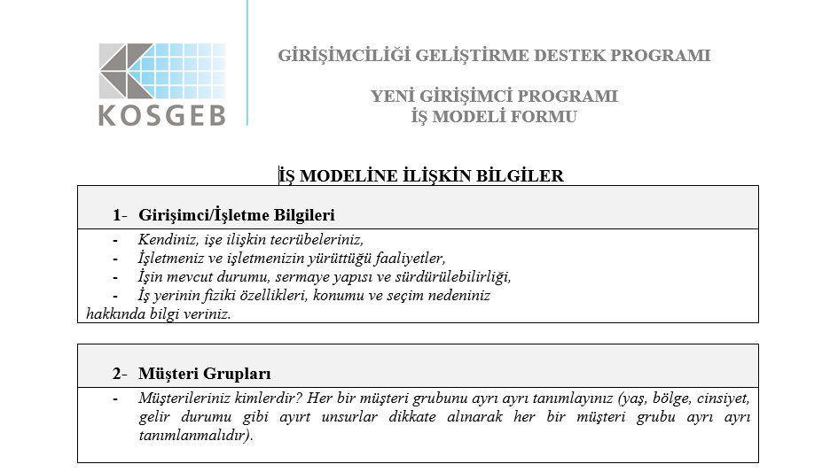 2020 Kosgeb Is Plani Ornekleri Yeni Sistem