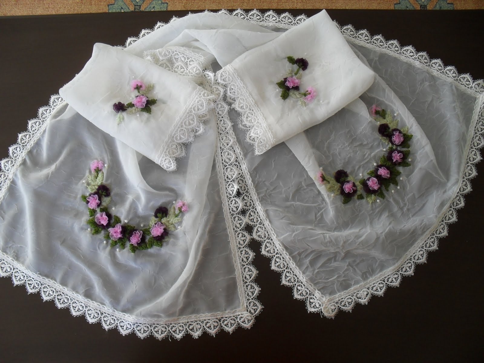 Bordo Kurdele Nakisi Ciceklerie Suslu Sehpa Ortusu Modeli Kurdele Nakisi Nakis Guller
