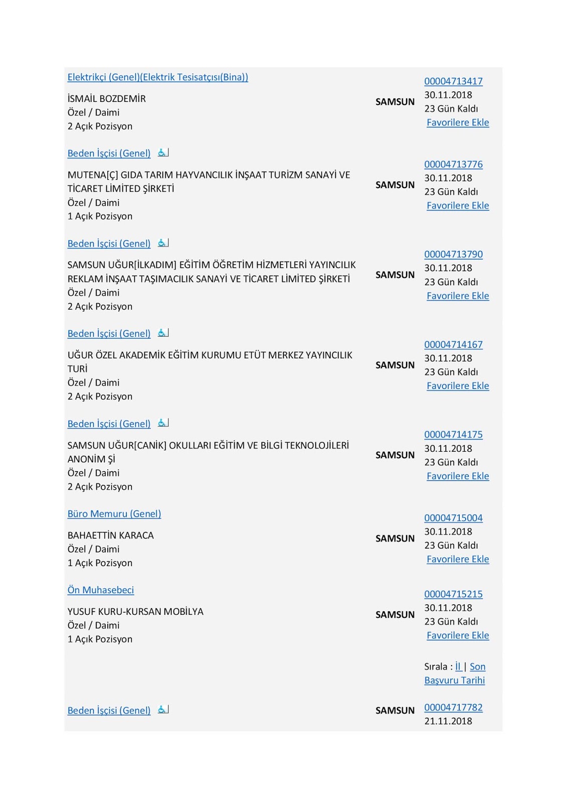 Samsun Ve Ilcelerinde Is Ilanlari