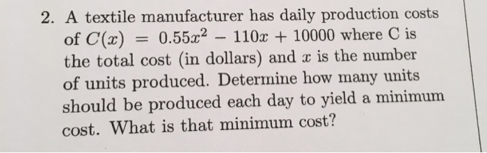Solved A Textile Manufacturer Has Daily Production Costs Chegg Com