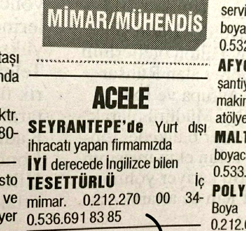 Ucretli Ve Issiz Mimarlar On Twitter Gunun Acil Ayrimci Is Ilani Hurriyet Ilan Sayfalarindan Bi Bitmediniz Ilan Ayrimci